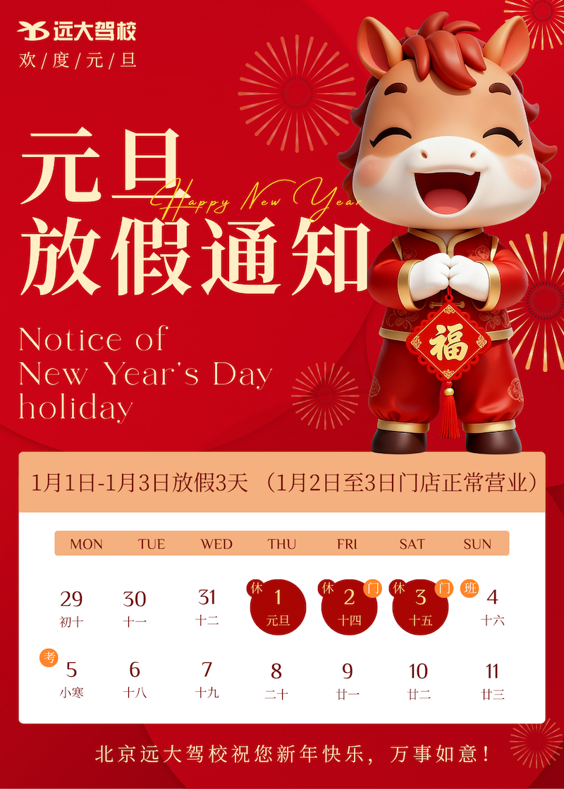 北京远大驾校元旦放假通知